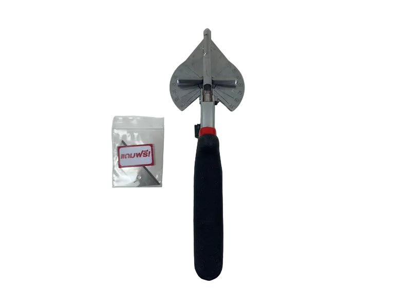 ใช้สำหรับตัดรางไฟพีวีซี คิ้วกระเบื้องพีวีซี จมูกกระเบื้องพีวีซี ใช้งานง่ายเพียงปรับองศาของตัวกรรไกรแล้วนำคิ้วหรือรางไฟพีวีซีมาวางโดยแนบตัวรางราบไปกับตัวรั้วของกรรไกร แล้วจึงออกแรงกดลงบนด้ามจับเพื่อกดใบมีดตัดรางพีวีซี องศาที่ได้มีความแม่นยำเมื่อนำมาประกอบที่หน้างานทำให้ได้ผลงานคุณภาพสวยงามเรียบร้อย ในชุดนอกจากใบมีดที่ติดอยู่กับกรรไกรแล้ว ยังแถมใบมีดให้เพิ่มอีก 1 ชุดรวมมี 2 ชุด